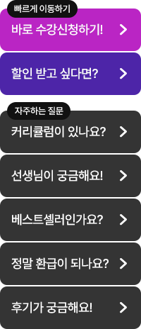 ※ 해당 강의는 특별할인 상품으로 포인트 할인 및 적립이 불가합니다. |