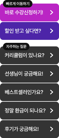 ※ 해당 강의는 특별할인 상품으로 포인트 할인 및 적립이 불가합니다. |