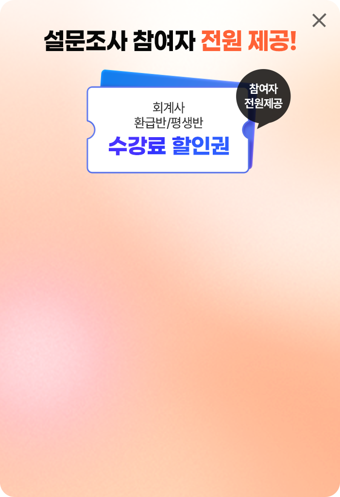1) 설문조사를 완료하시는 분에게 회계사 300% 환급반 수강료 할인쿠폰이 제공됩니다.