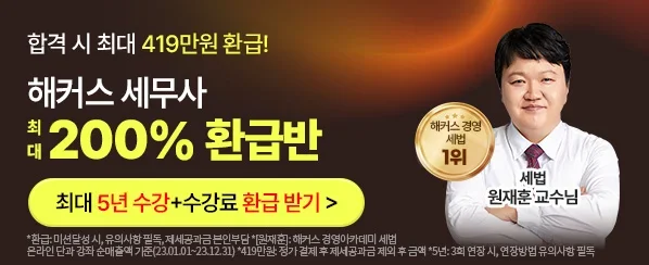 해커스 세무사 200% 환급반 최대 할인권 받기 GO >>