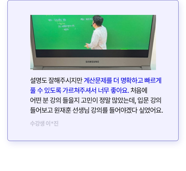 - 회계사 환급반 자체가 동기부여가 되어 동차합격에 큰 영향을 준 것 같습니다. - 회계사 합격자 김*운